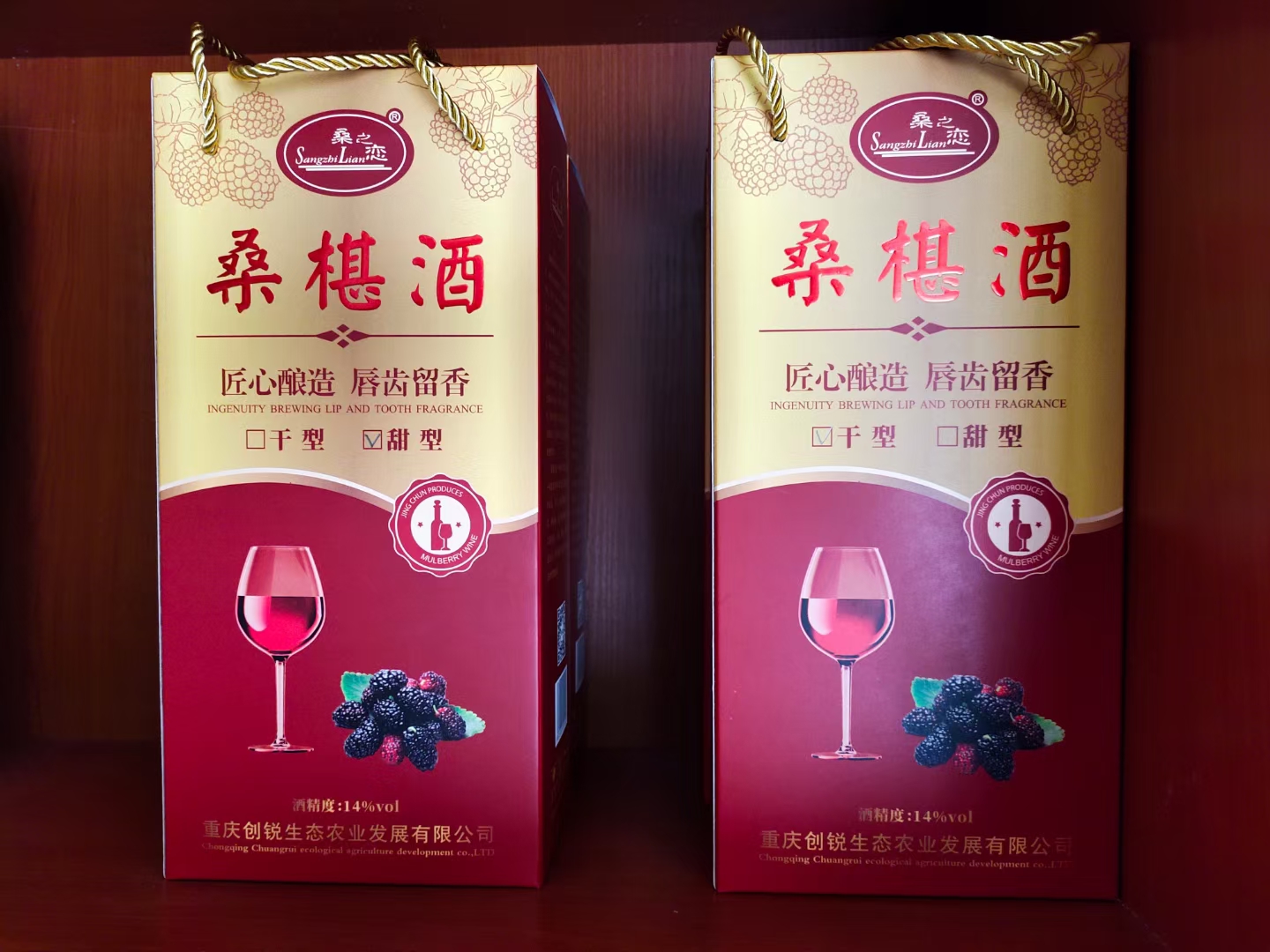 “桑之戀”牌桑椹酒主要有兩種酒型:甜型和干型。